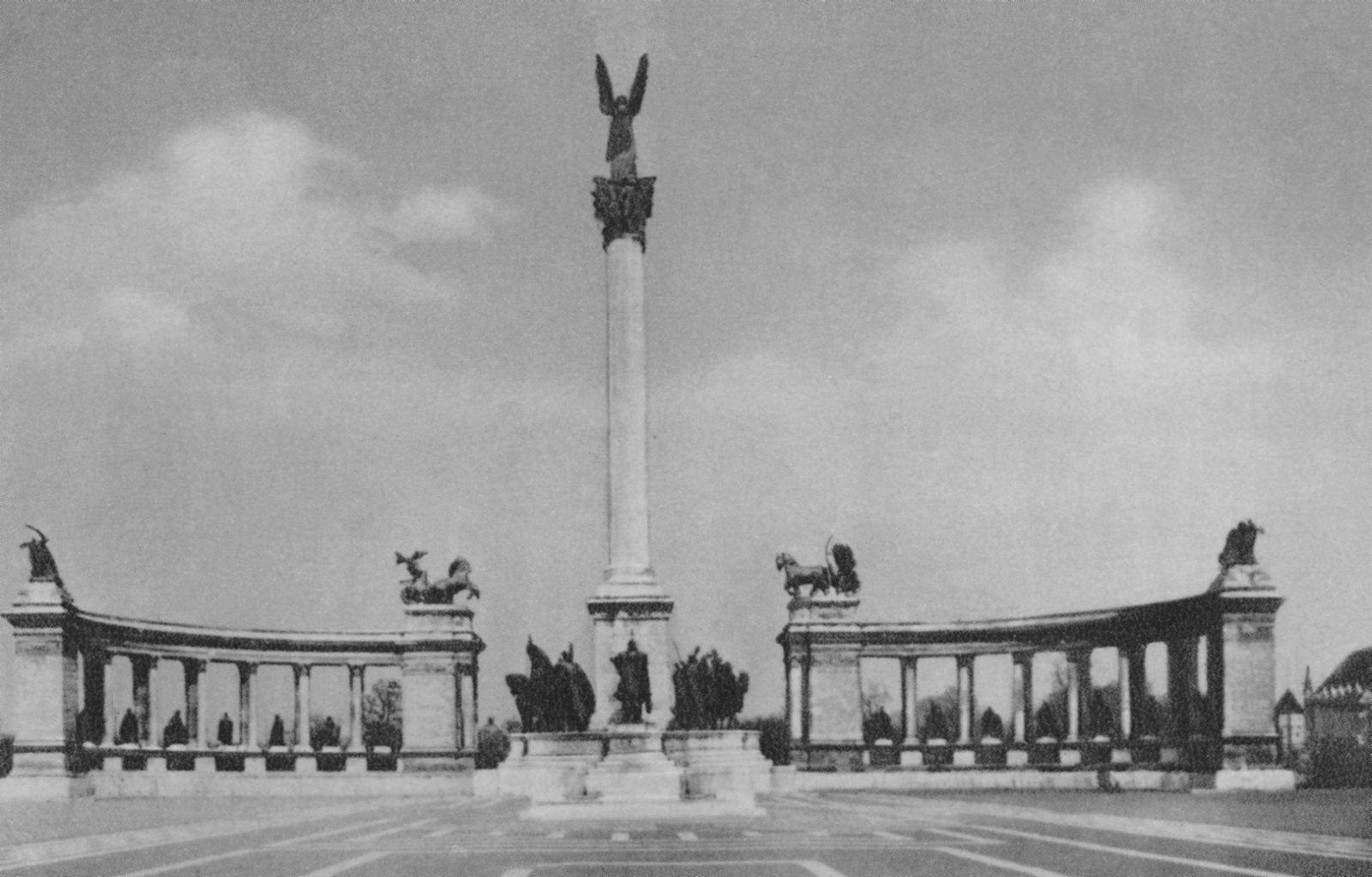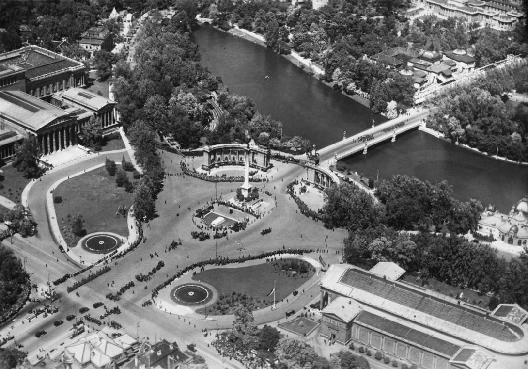 Az emlékmű az 1896-os millenniumi ünnepségekre szánt szánt számtalan építészeti és városfejlesztési beruházás (Ferenc József híd, Nagykörút, Millenniumi Földalatti Vasút, Országház, stb.) egyik ékköve, ami azonban a késlekedések miatt csak tíz évvel később, 1906-ra készült el. Tervezője Schickedanz Albert, az eredeti szobrok többsége Zala György munkája volt.