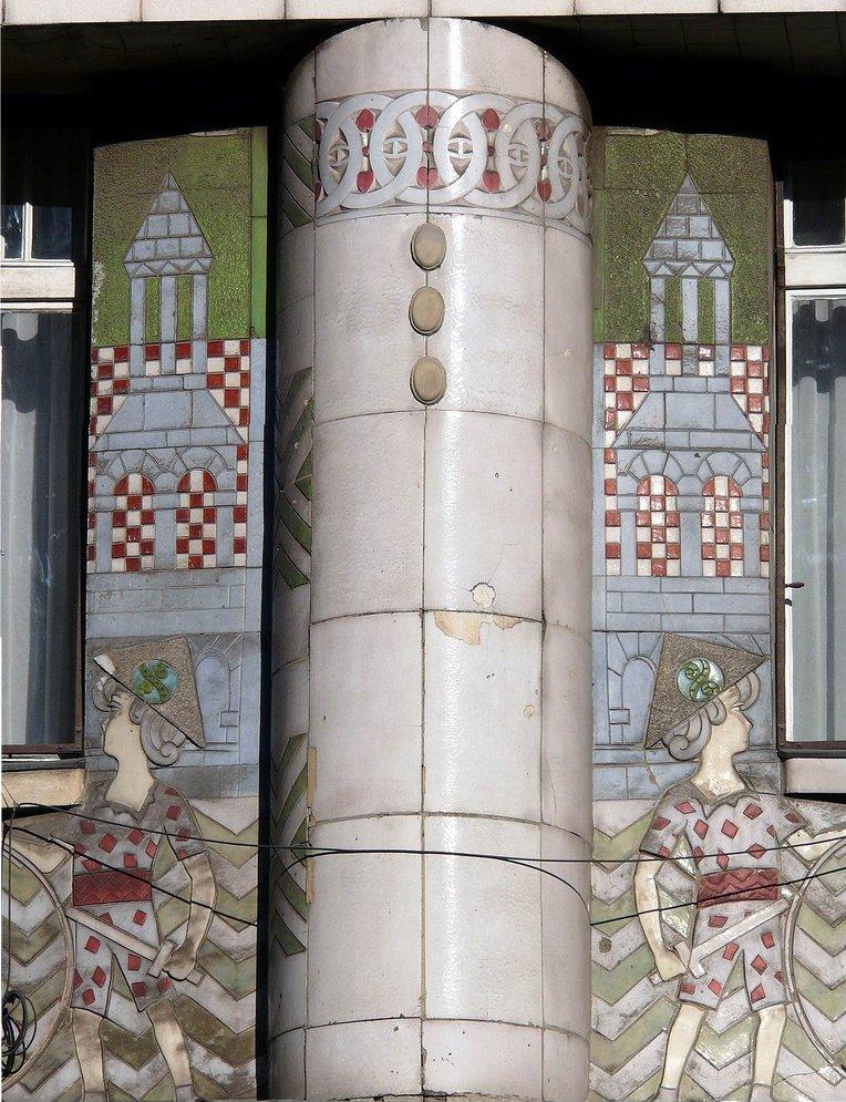 A Vágó László és József által tervezett, 1908-ban épült szecessziós lakóházban a Rákóczi út, Dohány és Síp utcák keresztezésénél, a Késmárky és Illés cég Árkád Bazár elnevezésű játékárúháza 1909-ben nyílt meg a földszinti terekben. A különös hangulatú épület márványburkolatán gyermekjátékok és állatfigurák sorakoztak a pécsi Zsolnay-gyár eozinos kerámiájából formálva. Európa egyik legnagyobb játékáruháza volt.