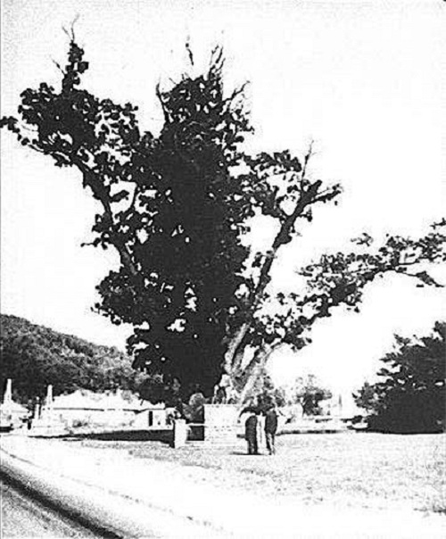 Itt állott az egykori, legendás Rákóczi-fa, melynek kiszáradt maradványát sajnos néhány éve eltüntették az emlékparkból, így a park központi eleme, a magas, hatalmas fatörzs is eltűnt. (A helyén ma kerek virágágyás, mögötte a törzs kis darabja, két kis krómozott táblával.) Változtak az idők, a történelem, az ötvenes években Rákosi-fa (!), 1957 után, egészen a rendszerváltásig pedig Vöröskatonák emlékfája volt a neve. A fa köré az 1980-as évek elején komponált érdekes szoboregyüttest Kiss István: nonfiguratív kompozíciót, durván megmunkált kőtömbökből. A sok-sok kőfigura a hajdani hatalmas fa alatt gyülekező katonákat, harcosokat jelképezi. Az utóbbi években a két, festett acél (vörös, majd nemzetiszínű, illetve zöld) zászlót krómacél zászlóra cserélték, formáját azonban megőrizve. Korábban a fatörzsön rézdomborításos emléktábla volt, ma a zászlókon olvashatjuk a tudnivalókat: "Azokra a nógrádi hősökre emlékezve akik az / évszázadok során harcba indultak népünk / szabadságáért." Az 1960-as évekből származó fotók tanúsága szerint Kiss István kompozíciójának felállítását megelőzően is állt itt egy egyszerűbb emlékmű, amely a vöröskatonák emlékére készült (1919-ben visszafoglalták a csehszlovák intervenciós hadseregtől a környéket a vöröskatonák, akit érdekel, érdemes utánaolvasni).